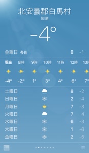 今日の白馬は−4度。快晴。当日もこんな天気になりますように。宮崎 みなみ