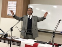 メッセージ前賛美の後、メッセージがローマ8:28、Iテサロニケ5:16~18節から、語られました。