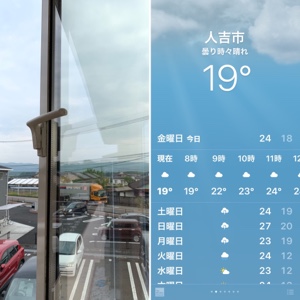 朝は曇り空