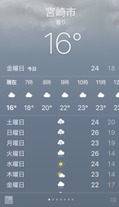 曇りでわりと涼しいです。日中は暑くなりそうです。宮崎 みなみ