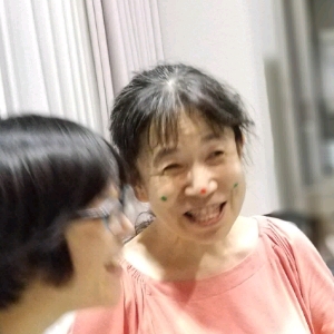 じゃんけんで負けたら、ほっぺたにシールを貼ります。