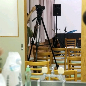 明日の聖会の準備をされています。