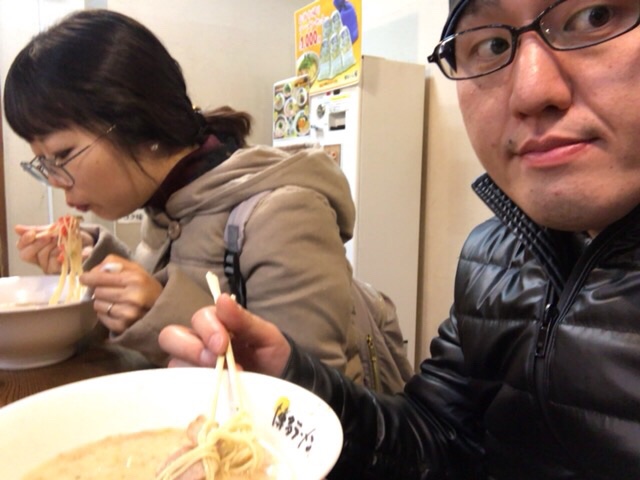 空港に行く前に夜ごはん。博多ラーメンを食べてます!一杯280円(^ ^) 久留米 matsu