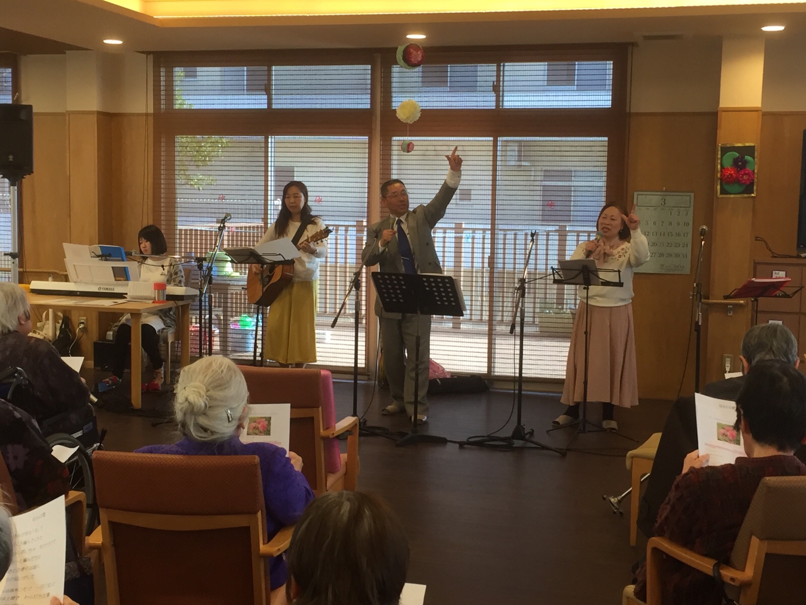 「あべりあ福智の丘デイサービスセンター」で、「GRACE」と「Jゴスペルチーム・天の賛美隊」が、コンサートをさせて頂きました。とっても、喜んで迎えて下さいましたぁ。♪( ´θ`)ノ
