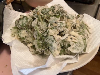 ぎょうざとタラの芽、野菜です。感謝します。