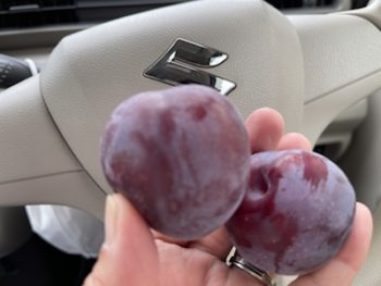 母が1週間に1回行っているディサービスに用件がありいきました。そこの敷地内にプラムの木があり見ていたら、2個いただきました。