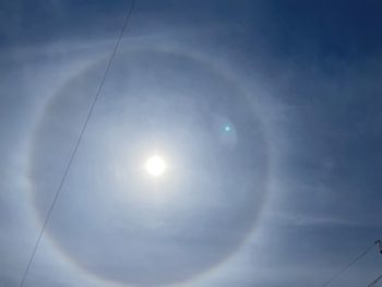 今から熊本に行こうと思い空をみたら、綺麗な光輪と彩雲が出ています。