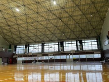 台風のため小学校に避難しています。