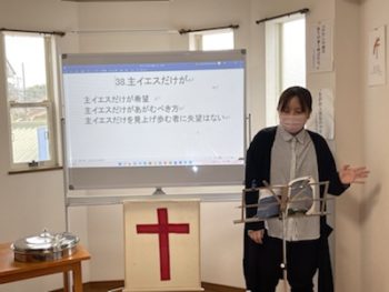 ルツさん、前半賛美を導いておられます。