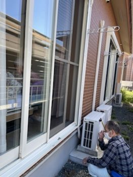 コロナ対策で外からの窓越し面会です。