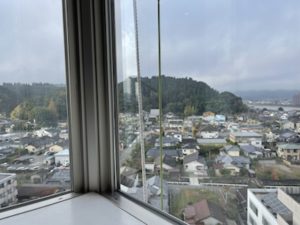 9階の外ガラスを男性が拭かれ下に降りていかれました。ブランコのようなものに乗って作業されていました。安全ベルトはされていました。