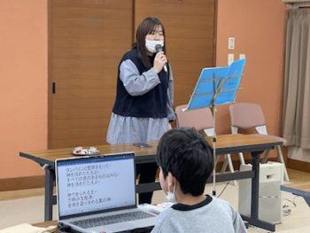 Yくん、プロジェクターの奉仕をしています。