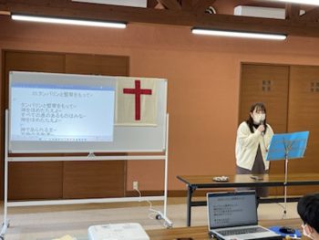 ルツさん、前半賛美を導いておられます。