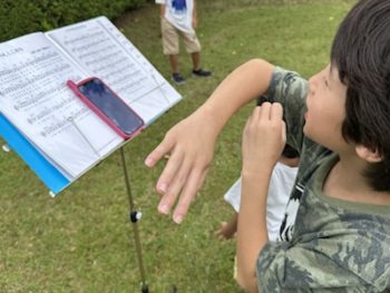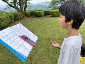 サッカー少年5名⚽️その中の2名、賛美している後ろにいつのまにか来て、賛美を聞いていました。