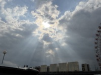 屋上に着いた時、すでに、天からの力強い光がさしていました。