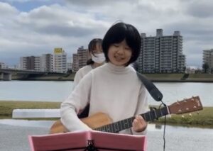 今日は市役所前の河川敷で賛美しました。宮崎 みなみ