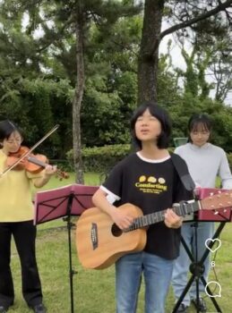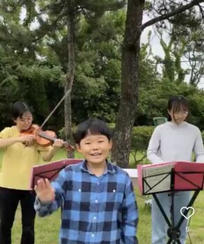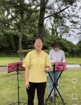 結婚式の帰りの団体さん達が通られて、立ち止まって聞かれていて、その中の1人の男性が賛美隊の前に立たれ、楽しそうに指揮をして下さいました。(*^_^*)