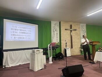 メイン礼拝は新しい場所でした。マタイ5章からメッセージが語られました。宮崎 みなみ