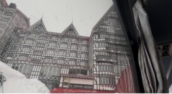 ホテルまでの山道は、丁度、除雪車が綺麗にして下さっていました。