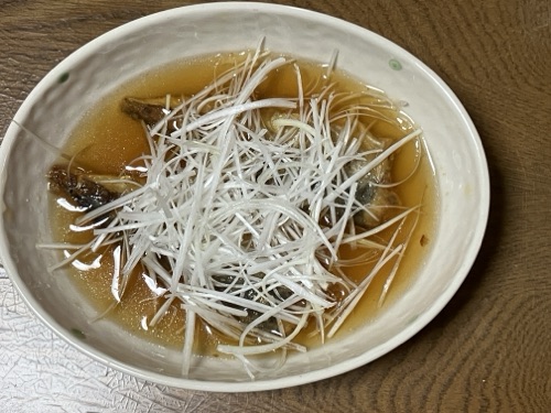 アジの南蛮漬け………昨日、イスラエルさんが、超新鮮なしらネギを買って来てくれたので、シラガネギたっぷり乗せて✌️🤗