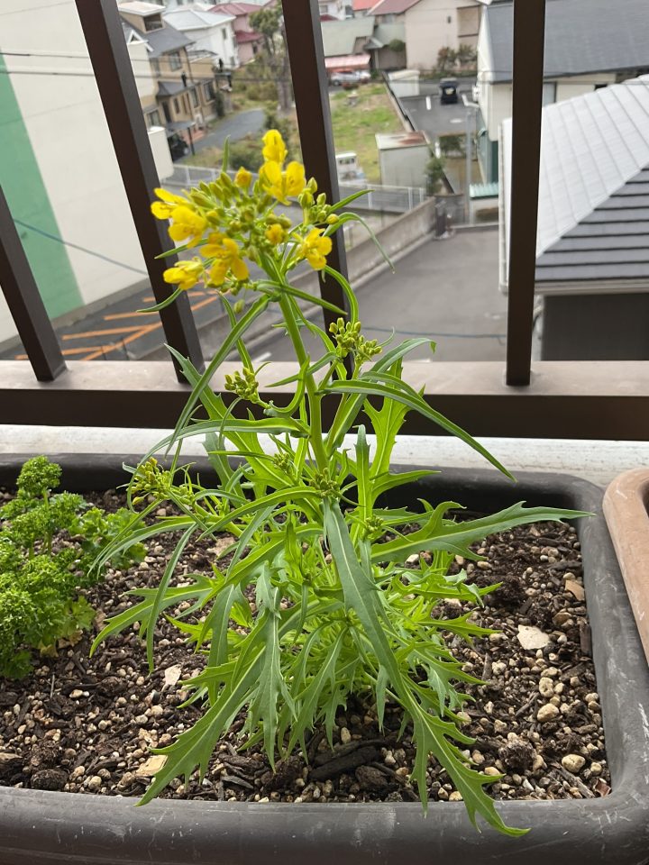 白馬から帰ったら、水菜に花が咲いていましたぁ🥹