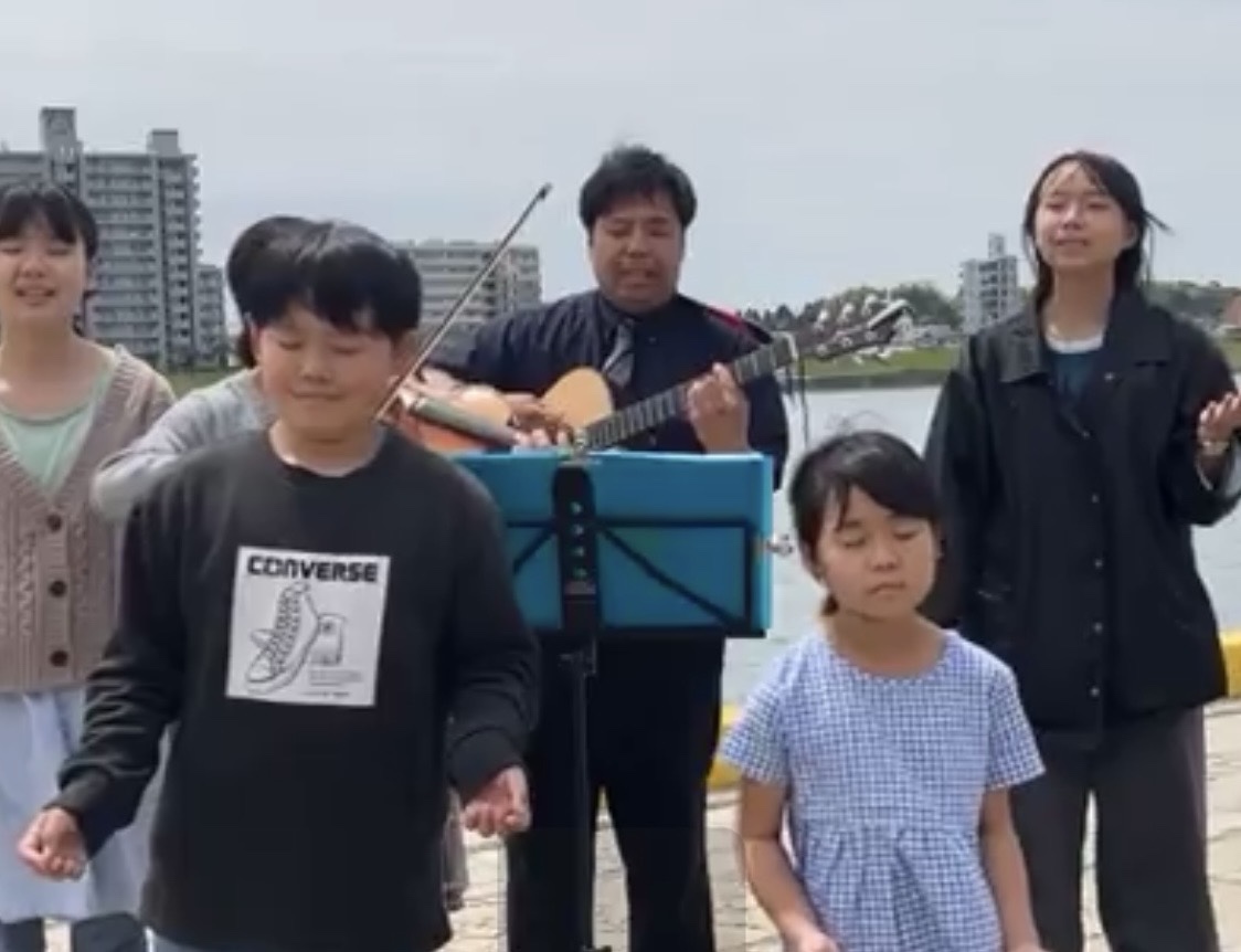 礼拝後、832の教会に向けて、河川敷で賛美しました。深く神さまがのぞんでくださいました。宮崎 みなみ