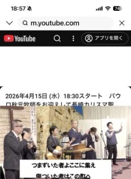 パウロ聖会賛美 2026-04-15 / hakubasynergoi ヨハネ牧師さん導いておられます。神様に期待しつつ視聴してます。鹿児島 未分類 過去の投稿へ カリスマ聖会 前半賛美♫ 次の投稿へ 長崎カリスマ聖会 ショートメッセージ1