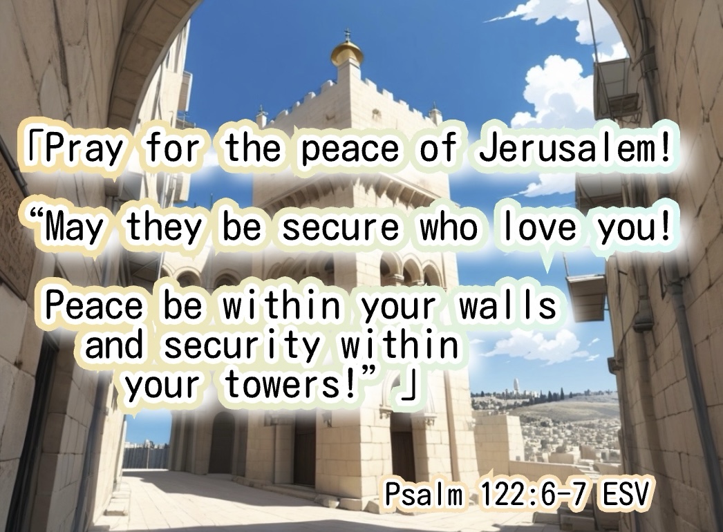 “エルサレムの平和のために祈れ。「おまえを愛する人々が栄えるように。”