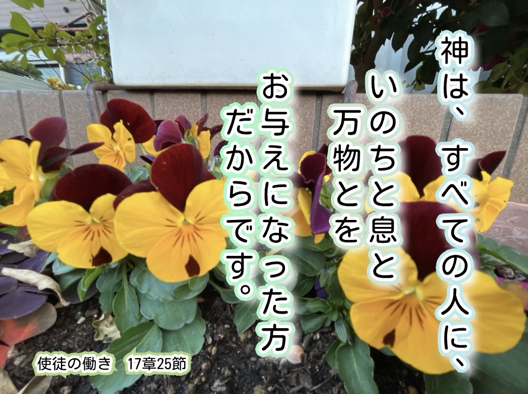 今日もみことばの恵みに感謝致します。望さん、感謝致します。凍える寒さの中でも、近所に勇ましく咲く花を見て、神さまがくださった命の尊さと力強さを見させられました。宮崎 みなみ