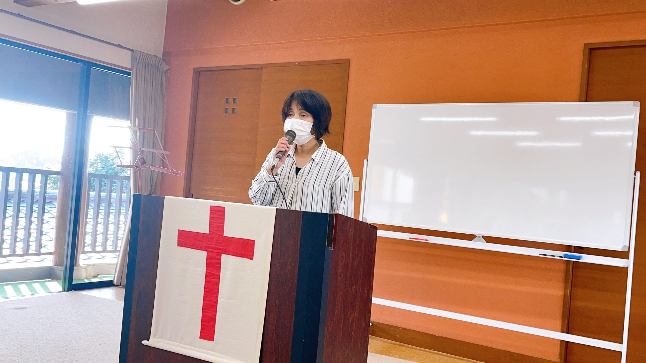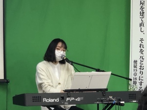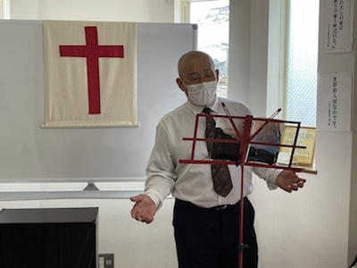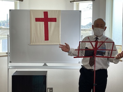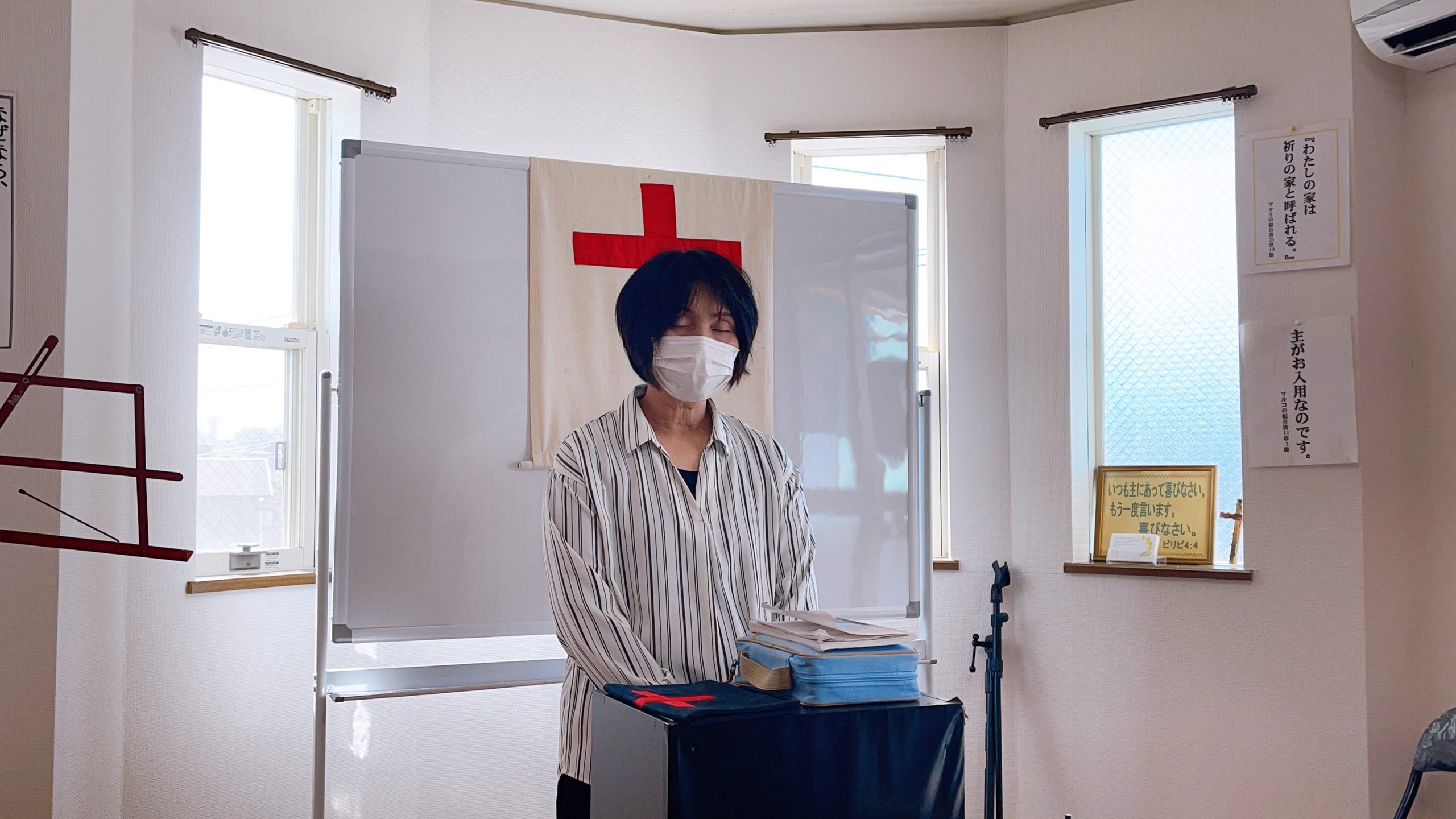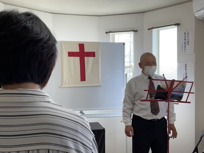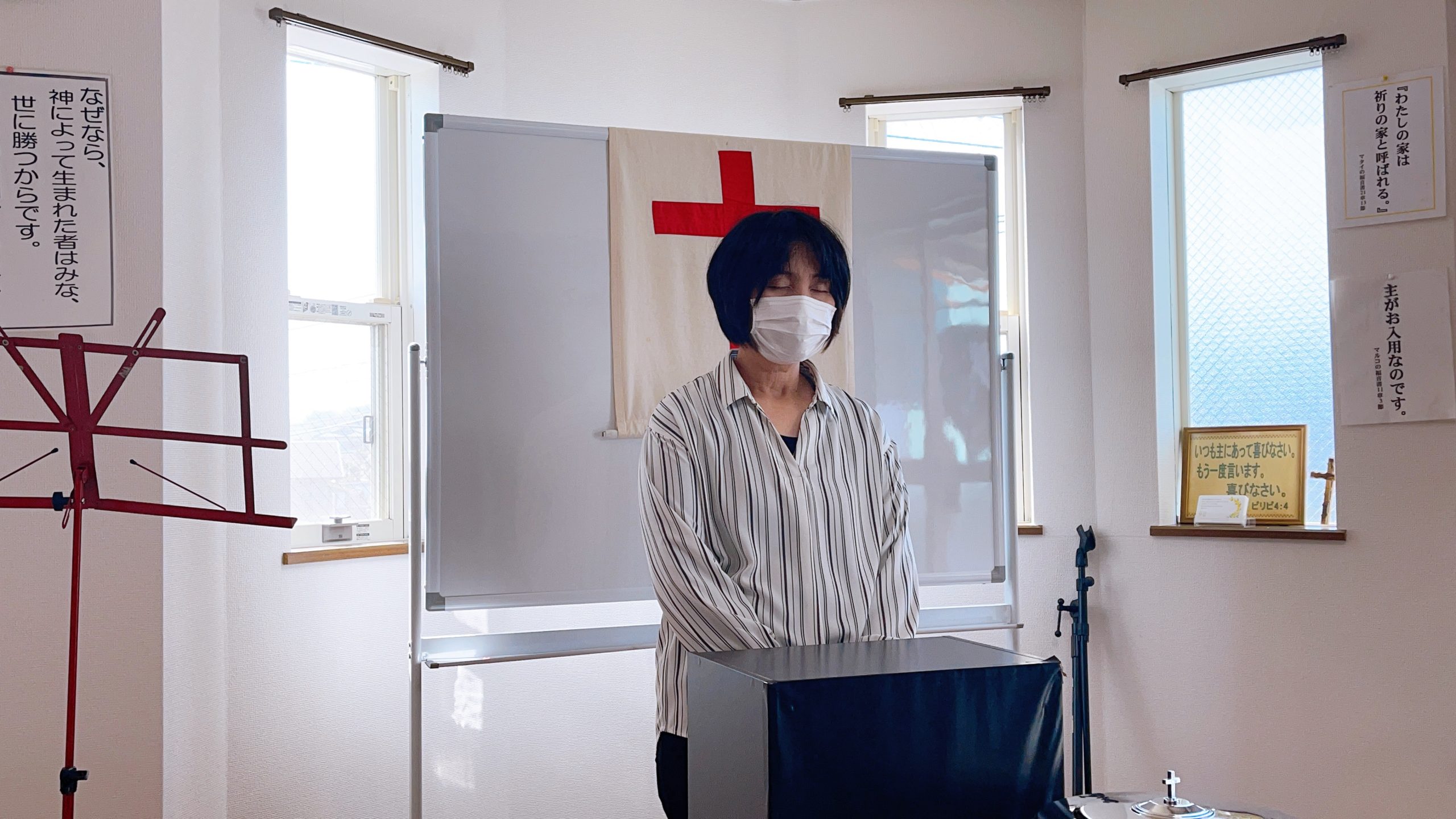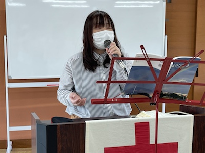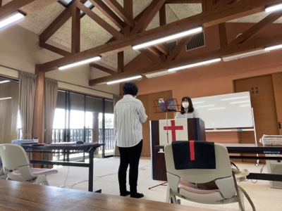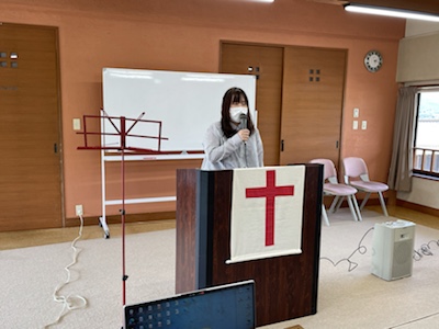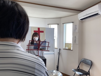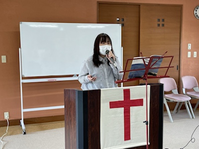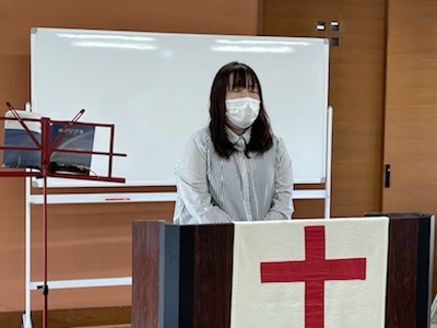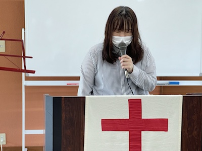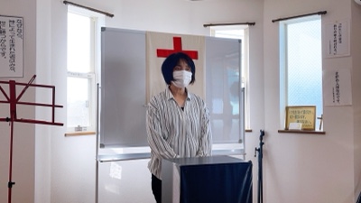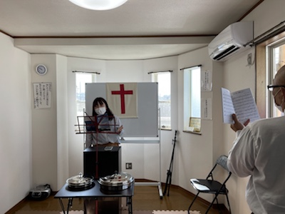 湯前教会 聖餐式 2021年11月7日 2:39 PM / hakubus1903 聖餐式の時です。 本日はダビデ村上さんのお父さんが 昇天され前夜式がなされるため代行で デボラ村上さんが聖餐式を導かれています。 人吉 ルツ