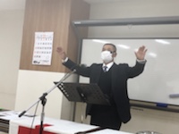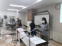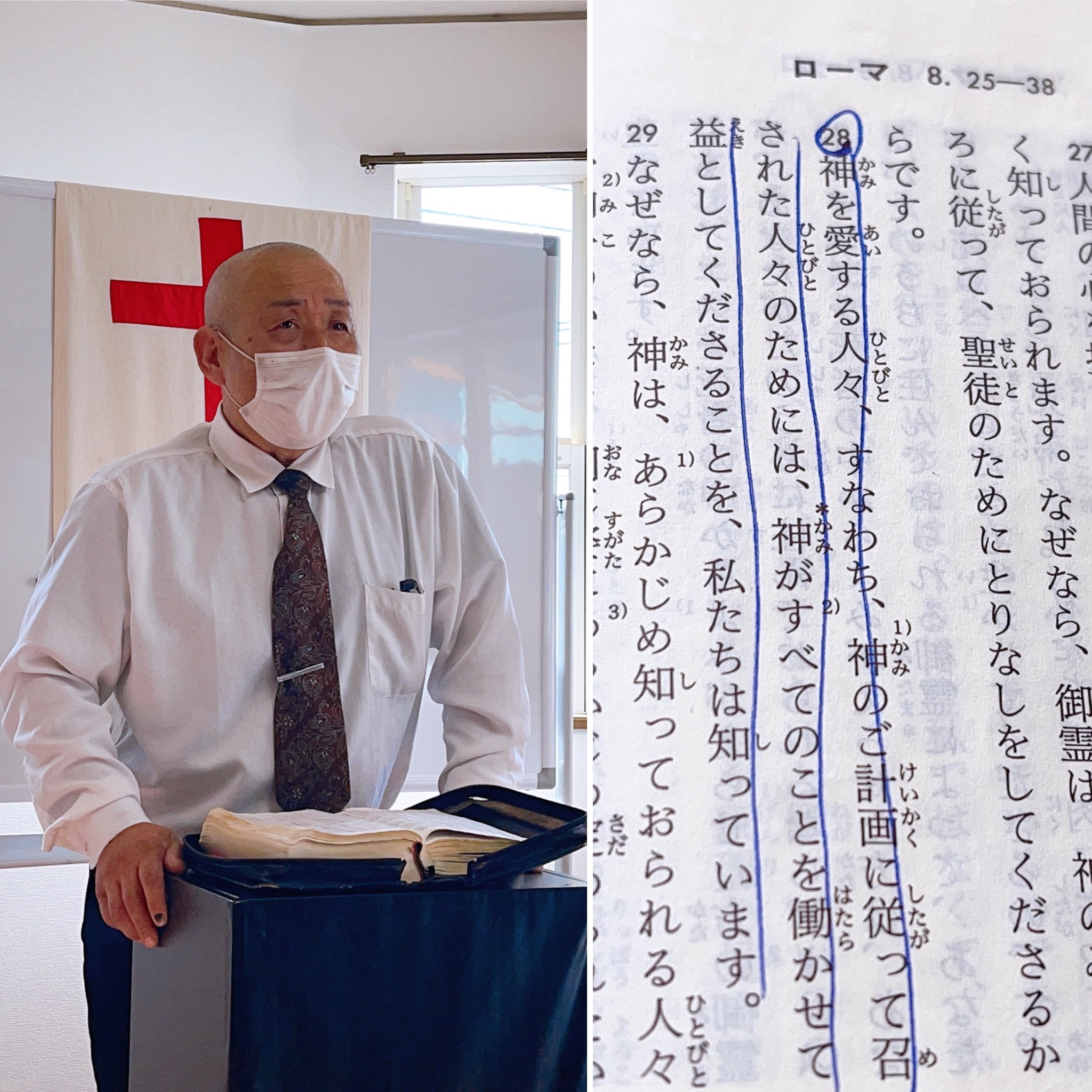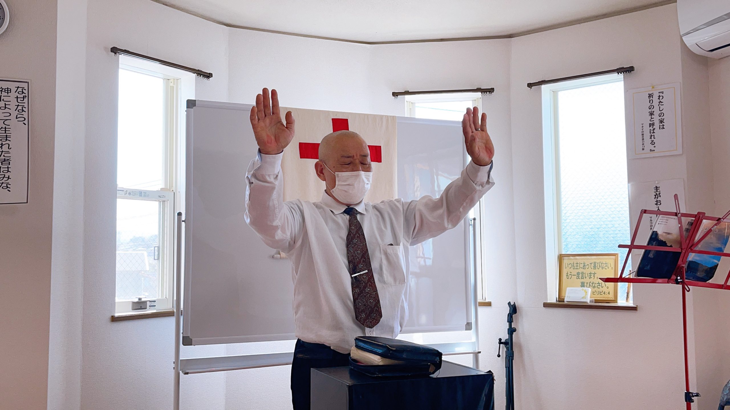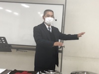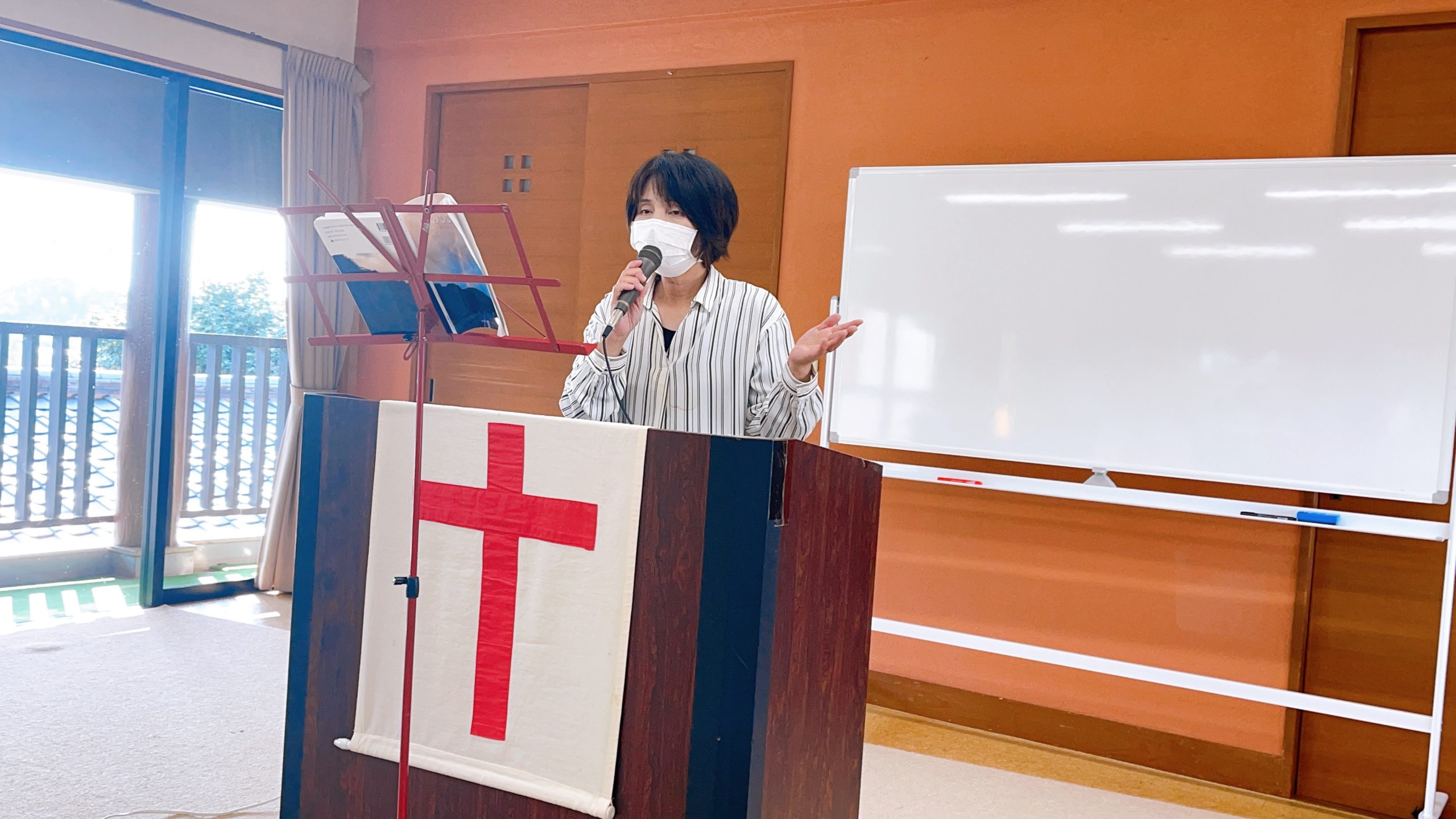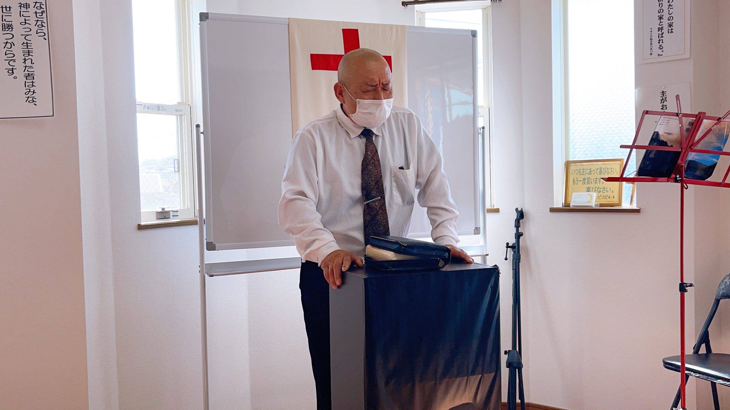 湯前教会 聖餐式 2021年11月7日 2:39 PM / hakubus1903 聖餐式の時です。 本日はダビデ村上さんのお父さんが 昇天され前夜式がなされるため代行で デボラ村上さんが聖餐式を導かれています。 人吉 ルツ